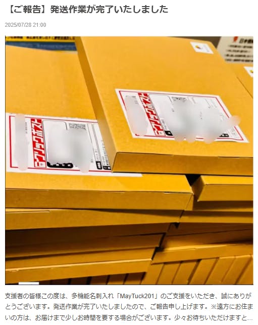 ※本文中に記載させていただいたスケジュールは あくまでプロジェクト公開時点での予定です。 ご支援の性質上配送遅延のおそれがございます。