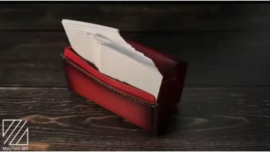 ・「名刺がたくさん入る」+ may tuck(詰め込んでもよい) の造語です。
