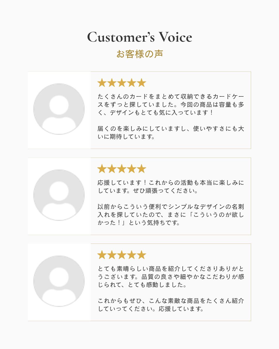 2026/02/03 22:00この度は、名刺入れのクラウドファンディングにご支援・応援をいただき、誠にありがとうございました。皆さまのお力添えにより、無事に募集を終了することができました。心より感謝申し上げます。引き続き、プロジェクトを行ってまいりますので、どうぞよろしくお願いいたします。 もっと見る【ご支援いただいた皆さまへ|お知らせ】