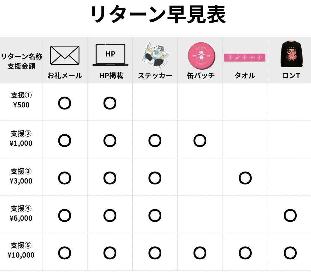 2025/11/01 15:04天満音楽祭2025のクラウドファンディングが無事に終了しました!ご支援・ご声援いただいた皆さま、本当にありがとうございました。皆さまのおかげで、無事に開催を迎えることができ、たくさんの笑顔に出会うことができました。改めて、心から感謝いたします。ご支援いただいた方には、リターングッズのお渡しについて後日あらためてご連絡いたします。受け取り方法や発送時期など、詳細が決まり次第お知らせしますので、もう少しだけお待ちください。これからも天満の街と音楽をつなげながら、みんなで楽しい場をつくっていきます!引き続き、どうぞよろしくお願いします。天満音楽祭 実行委員会 もっと見る