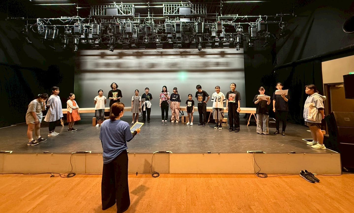 午前中は、大人キャストと子どもたちが共演するシーンのお芝居と歌の稽古をしました。