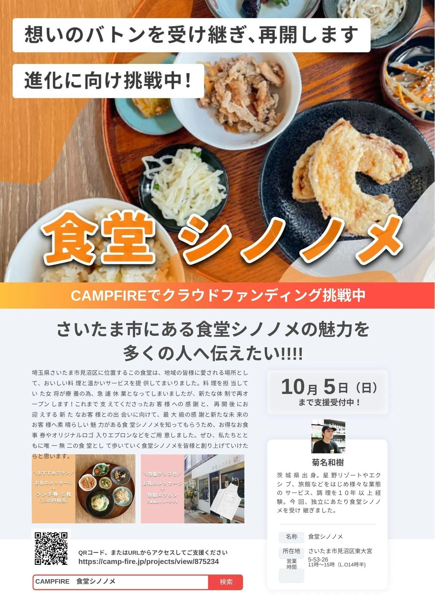 休業前からご来店してた方もクラウドファンディングで知ってくださいました方も食堂シノノメはどんどん進化して飽きさせないお店を目指していきますのでお楽しみにしていてください。