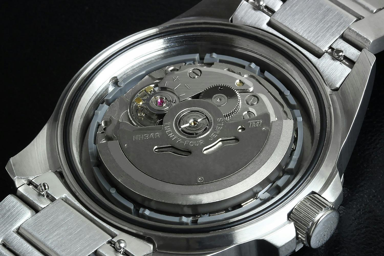 腕時計の心臓部でもあるムーブメントは日本製の機械式GMT「TMI NH34A」を採用。