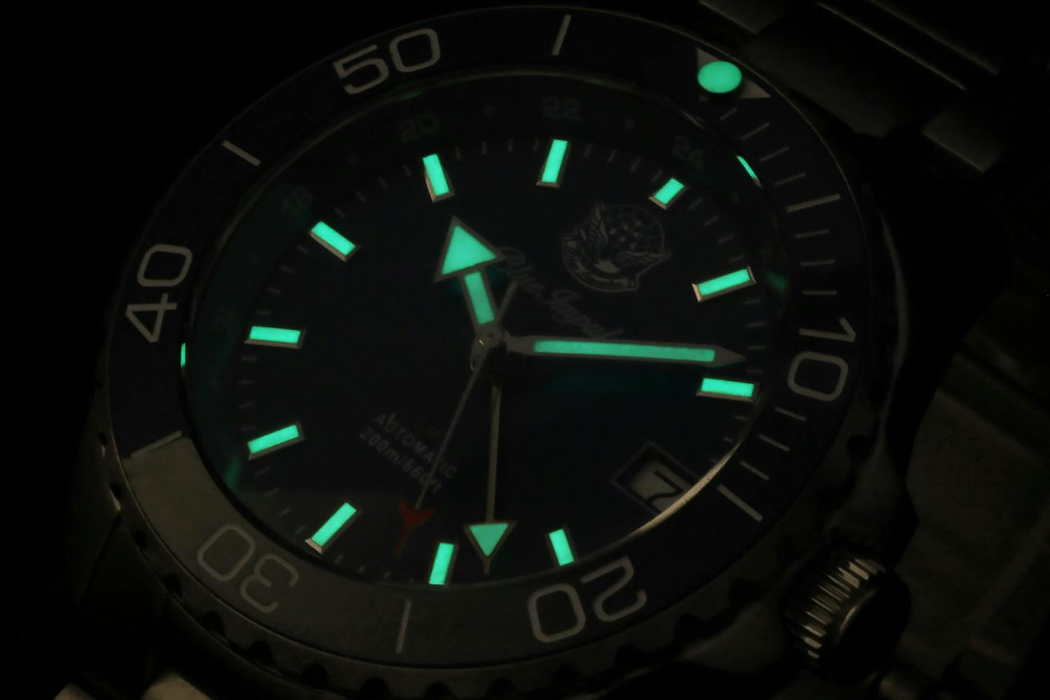 蓄光(時針、分針、インデックス、ベゼル12時ポイント)