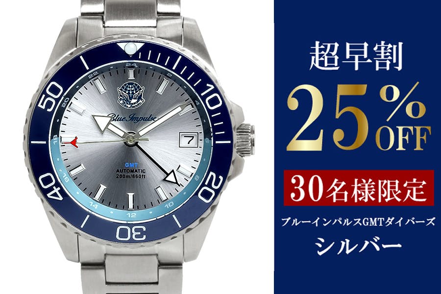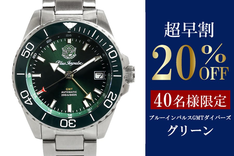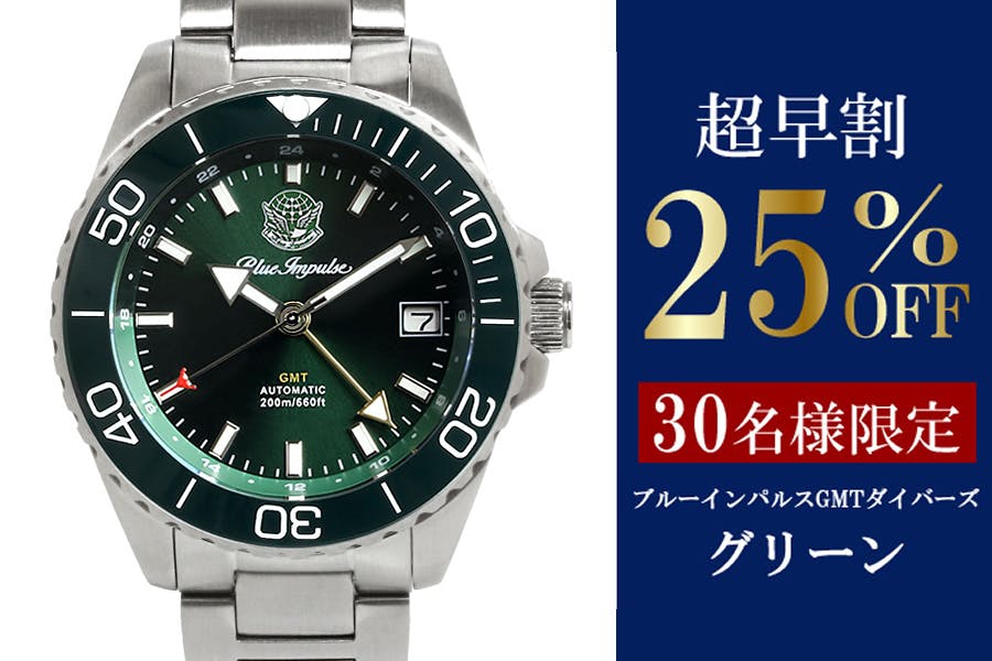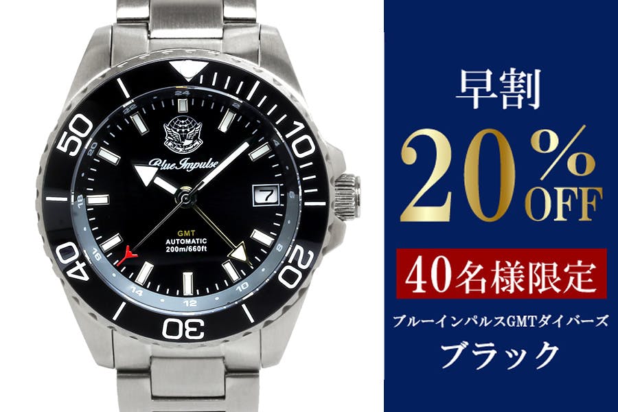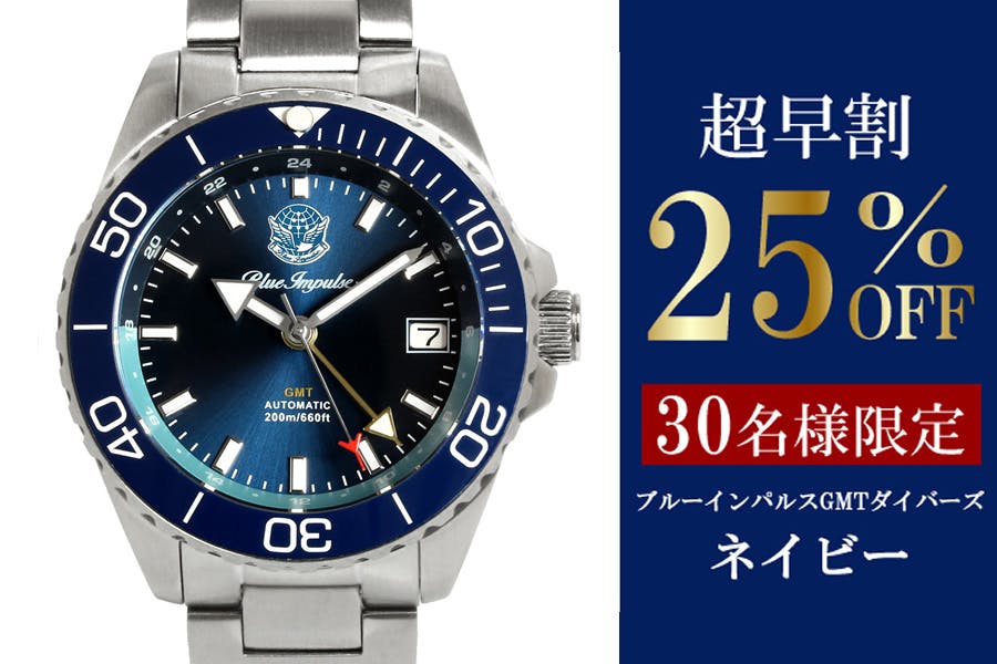 【超早割25%OFF】ブルーインパルス日本製GMTダイバーズ◆各色限定30本