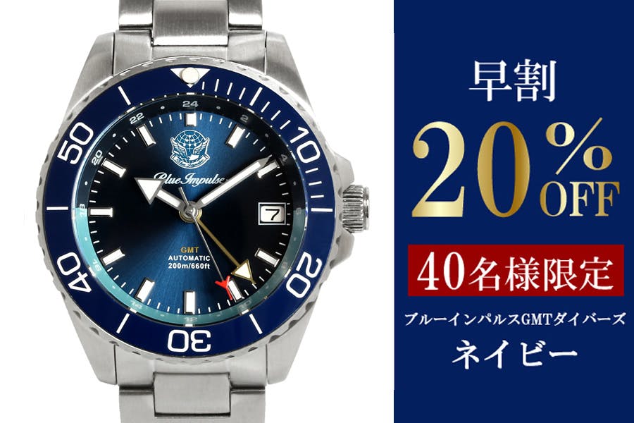 【早割20%OFF】ブルーインパルス日本製GMTダイバーズ◆各色限定40本