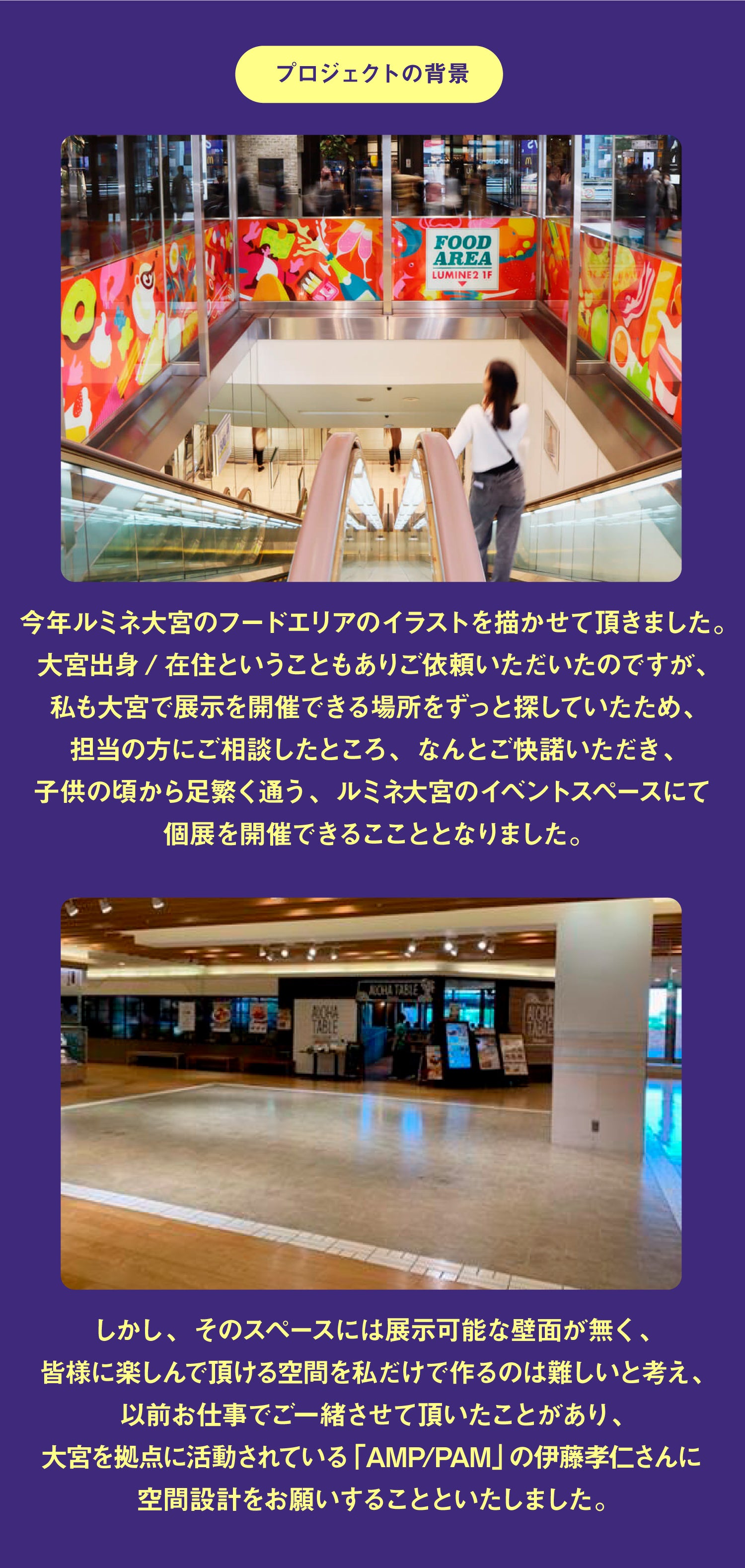 原画「SUNRISE」 (木製パネル/アクリルガッシュ/ F15号652mm×530mm/額装済 ) 今回の個展の制作段階初期に描いたもので、 本番ではアクリル板に多層プリントを施したものを販売予定のため、 手描きの原画はCAMPFIRE限定での販売となります。 ※額装した状態でお届けするので、そのまま壁掛け可能です。