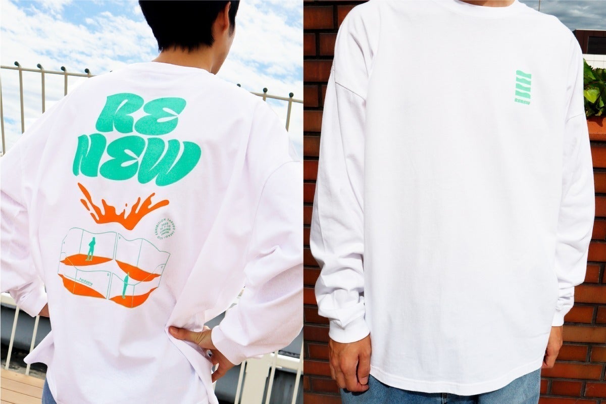 RENEWロングスリーブTシャツ (ユニセックス S/M/L/XL ) 今回の展示「RENEW」のロゴと、 展示什器の造形をグラフィカルに表現したロンTです。 こちらの白ボディのものはCAMPFIRE限定での販売となります。 ボディ: United Athle 5.6オンスビッグシルエットロングスリーブTシャツ