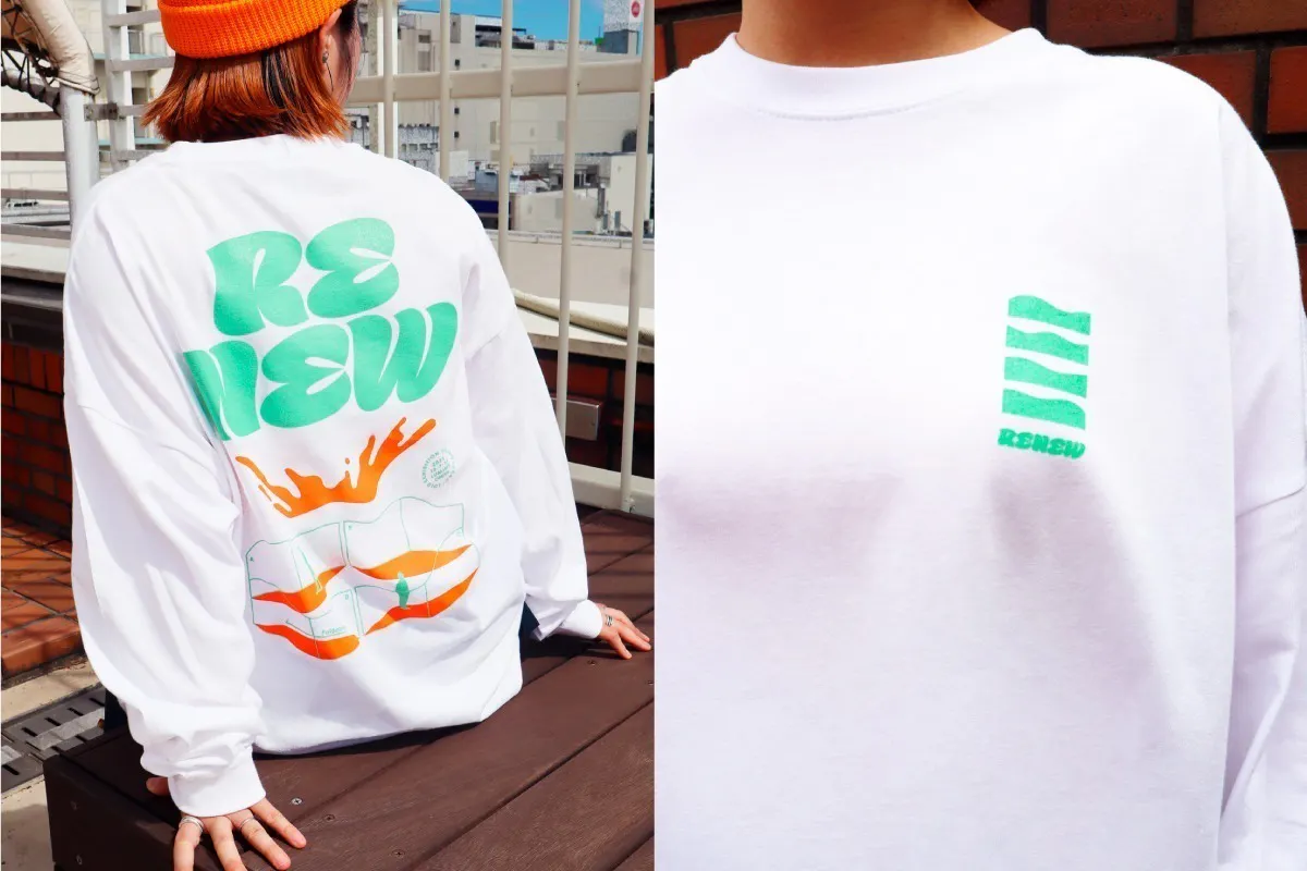 RENEWロングスリーブTシャツ (ユニセックス S/M/L/XL ) 今回の展示「RENEW」のロゴと、 展示什器の造形をグラフィカルに表現したロンTです。 こちらの白ボディのものはCAMPFIRE限定での販売となります。 ボディ: United Athle 5.6オンスビッグシルエットロングスリーブTシャツ