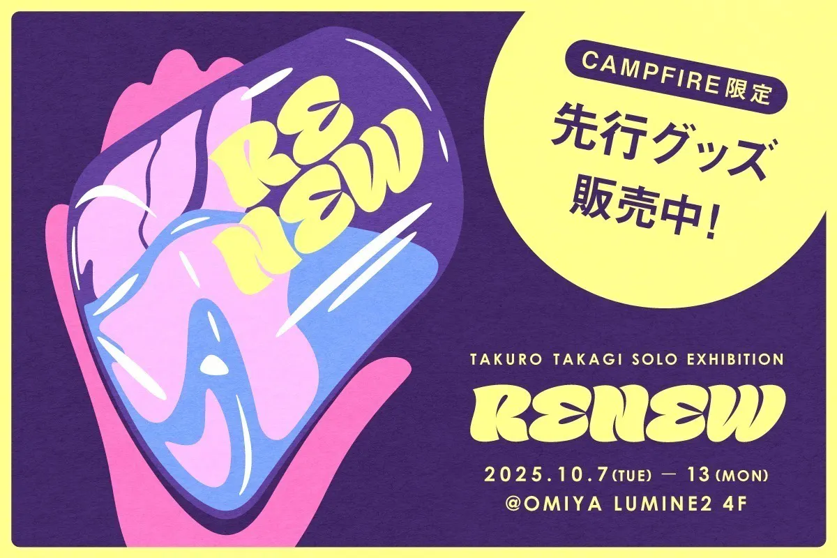 新作 + 旧作 作品集3冊セット 今回の展示作品を掲載した作品集「RENEW」と、 過去の個展「ロード」と「ホテル・ルモンド」の作品集を、 3冊セットにして直筆サイン入りでお届けいたします。 ※「RENEW」 デザイン未定/B5サイズ/50P程度 「ロード」 B5サイズ/38P 「ホテル・ルモンド」 A5サイズ/26P