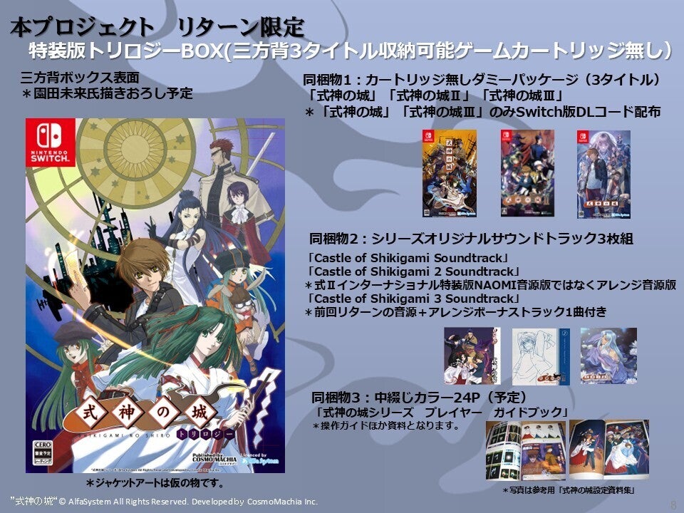 今は、ゲーム中のヘルプだったりデジタル化しているのが通常なのを紙で復刻させる企画というものでして。こちらは、「ビジュアルファンブック」とは内容が違いますので、トリロジーのみの特典となります、お間違えなきよう。