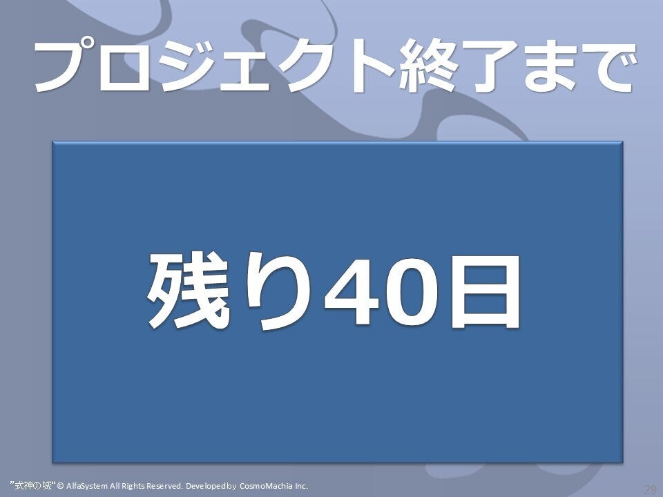 プロジェクト終了日まで残り40日となりました。11月30日(日)23:59で終了です。