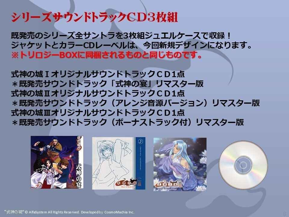 ”式神の城Ⅱインターナショナル特装版”に同梱したのが過去希望者に配られた”NAOMI音源版”でしたが、市販され絶版になった島村陽一氏によるリミックス版である『S2MIX版』をリマスター。