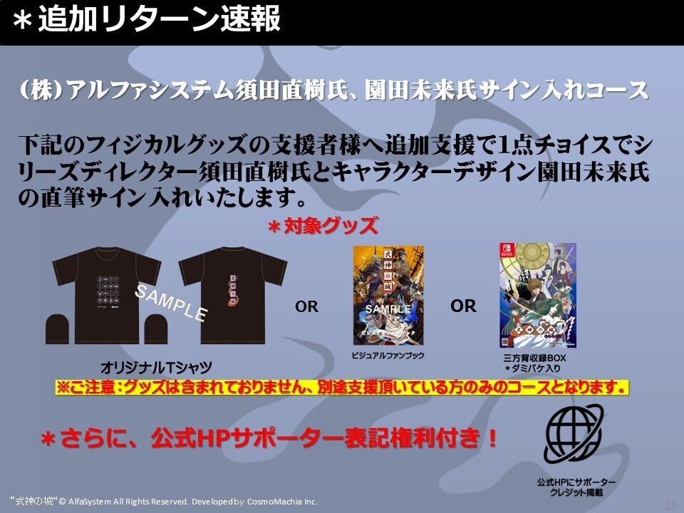 (株)アルファシステム須田直樹氏、園田未来氏のご厚意で以下のリターン支援者様のみにサイイン入れをしていただけることになりました。