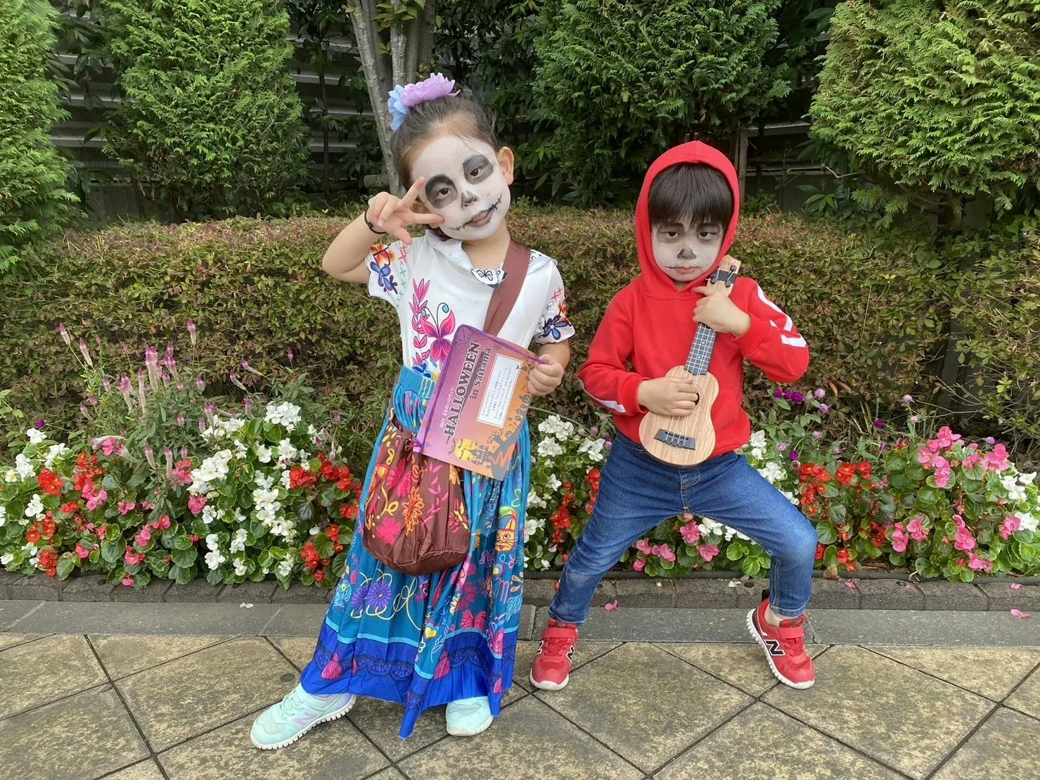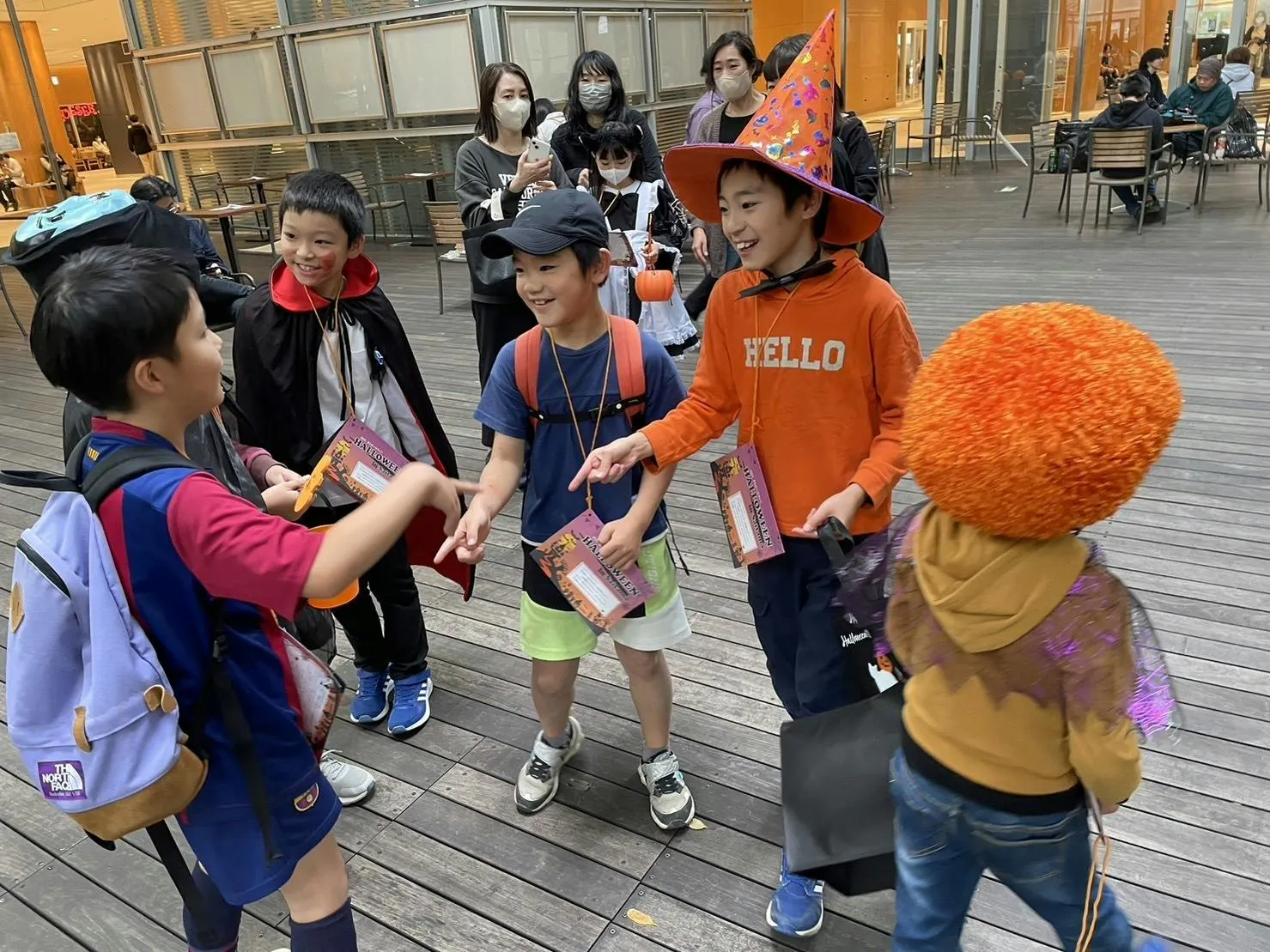子どもたちにハロウィンを楽しんでもらいたいという、お母さんたちの想いで企画された、4〜5家族のおうちを仮装してまわって、お菓子をもらうという企画が行われていました。