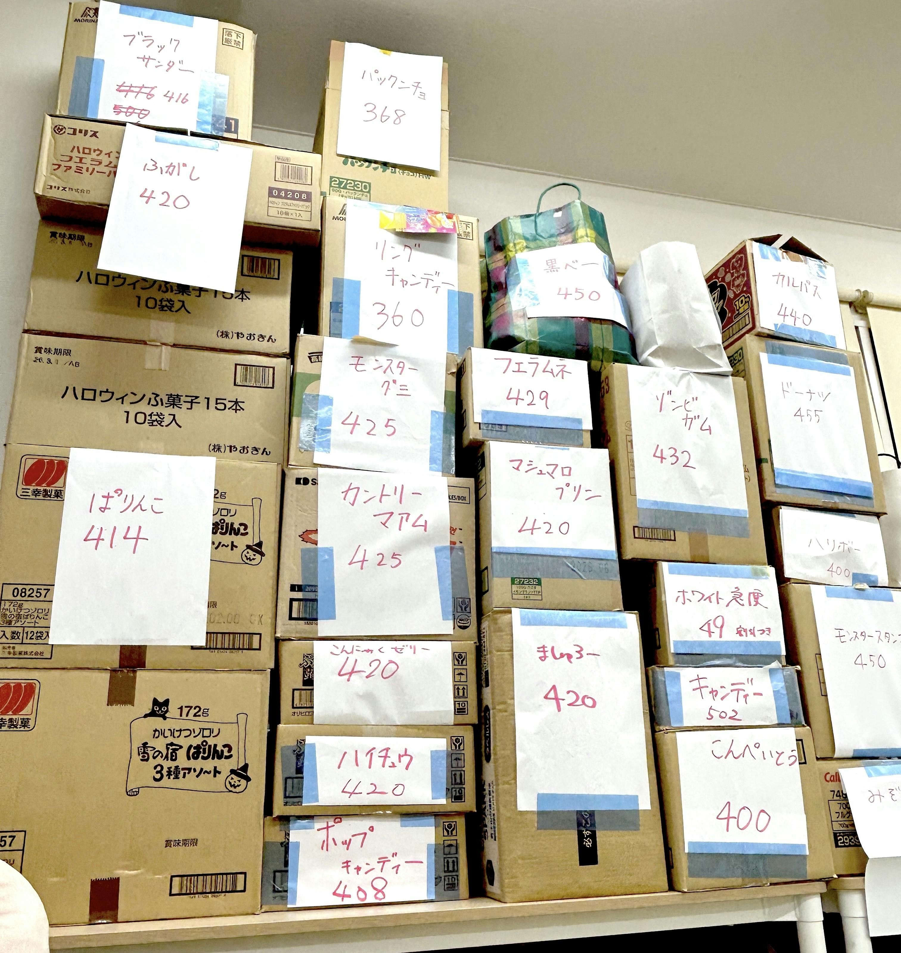 たくさんあるお菓子の購入支援!いただいたお金で参加者にくばられるお菓子を購入させていただきます!また、スポットにお名前(ニックネーム)掲載をさせていただきます!