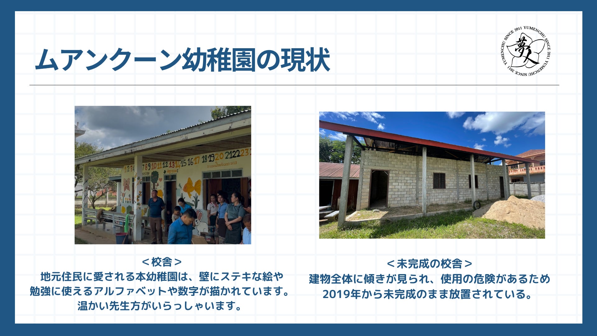 資金面につきましては、現段階で校舎増設にあたり、日本円にして約400万円がかかることが見込まれております。今回のクラウドファンディングと夢人の日頃の活動による収益によっての建設を目標としております。