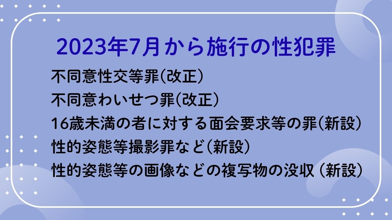 痴漢行為も、同じく2023年7月の法改正で「不同意わいせつ罪」が施行され、それまでよりもより厳しい基準で逮捕されるようになっています。