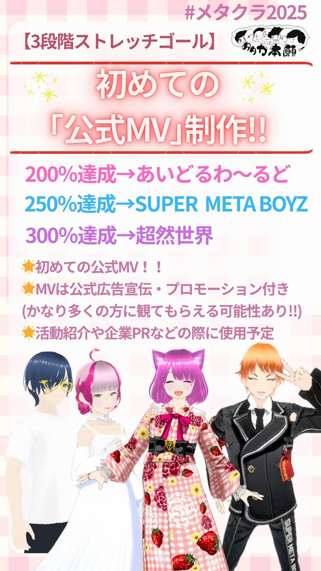 メンバーは「メタバースの世界で出会った一般の方や活動者」(歌やダンスのできないメンバーが大半です)という、全く新しいメタバースグループになります。