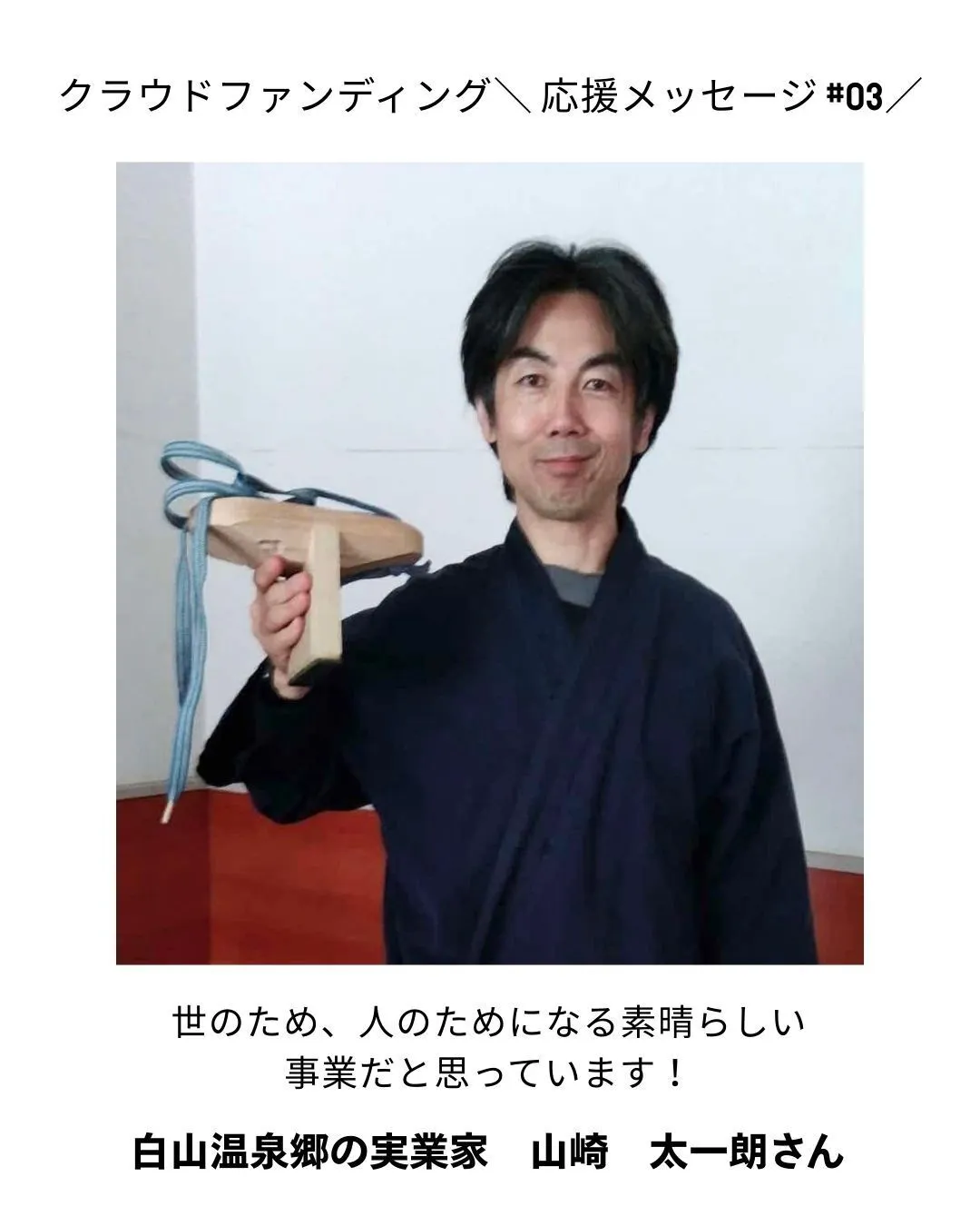石川県の白山温泉郷でホテル・旅館・バス会社・旅行会社を経営される山崎 太一朗さんから、温かい応援メッセージをいただきました。