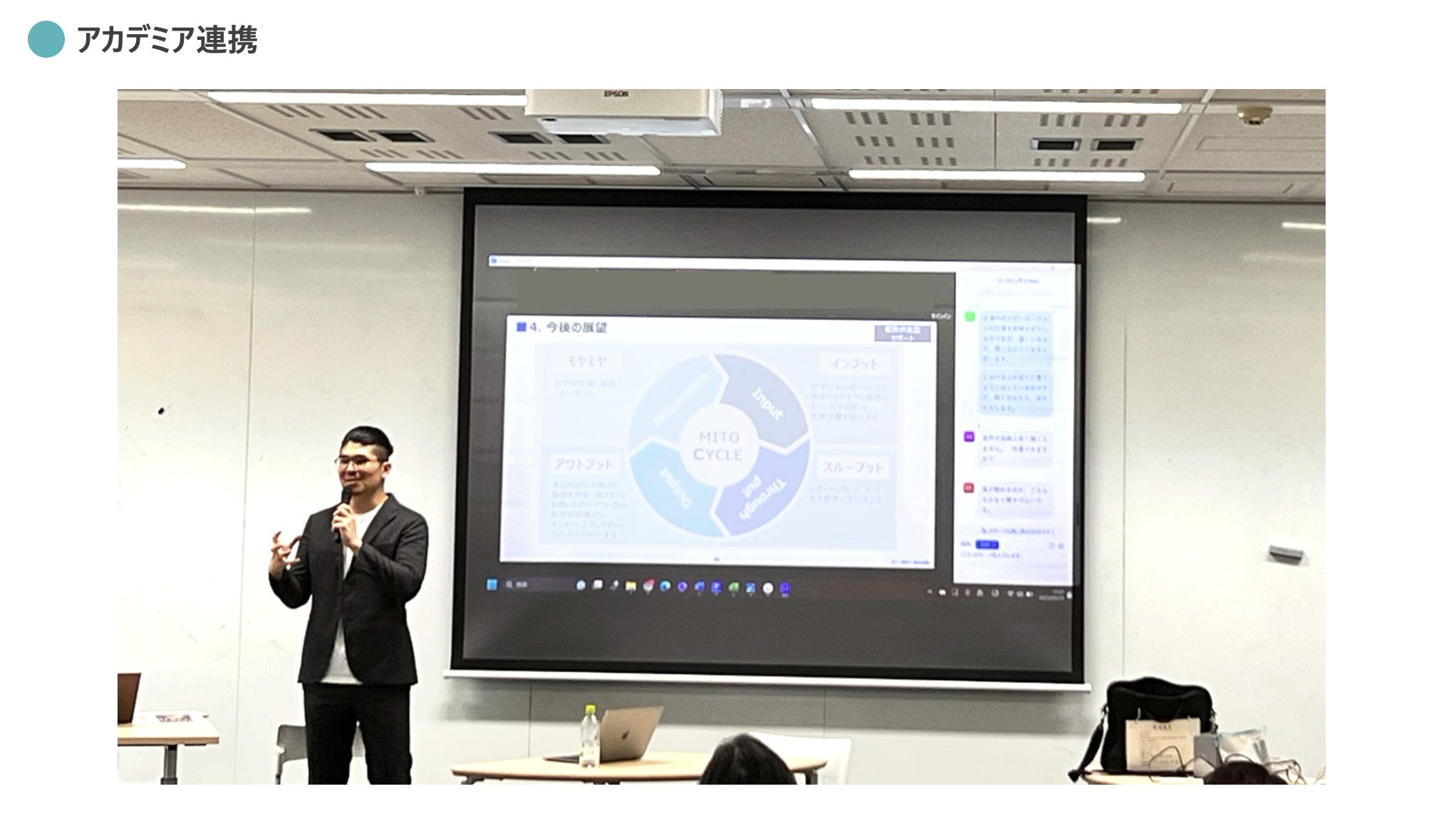 東京大学主催のシンポジウムに参加するなど、アカデミアと連携しながら活動しています。