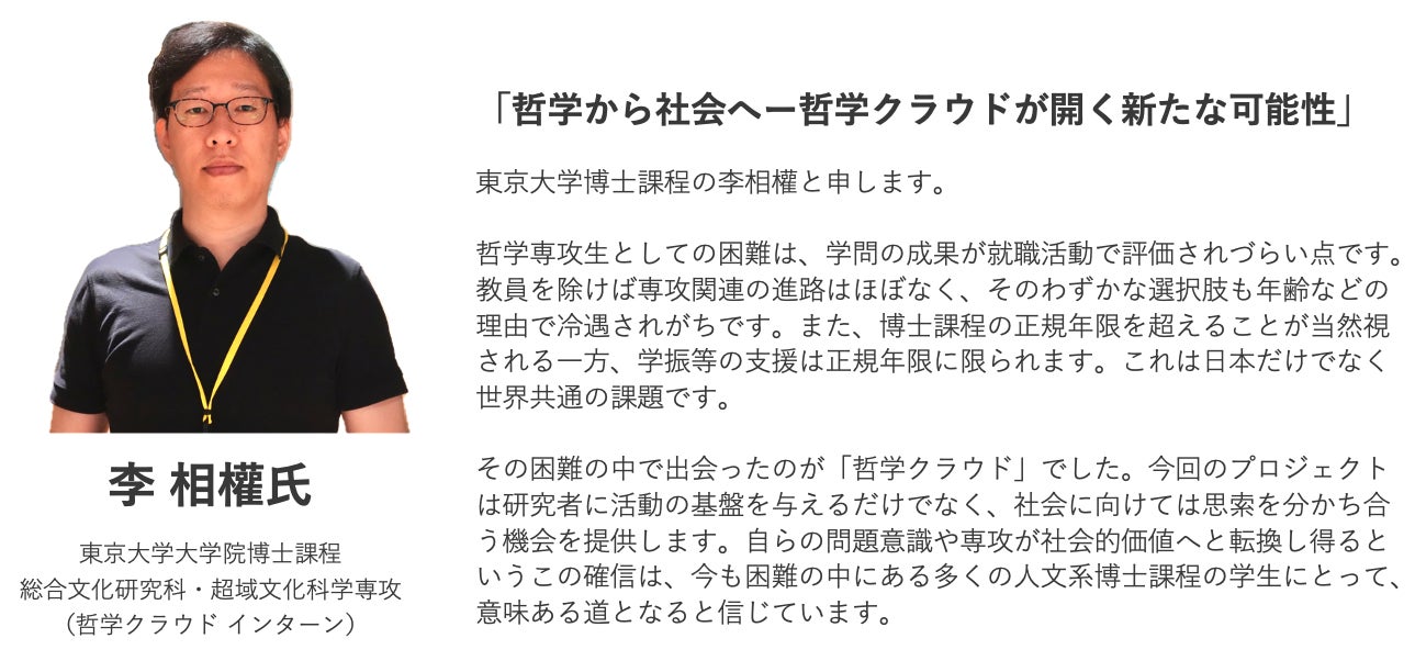 私の個人的な挑戦は、いつしか多くの仲間が集うチームの挑戦へと変わりました。東京大学や上智大学に所属する哲学の専門性を持つ仲間と共に、この社会のアップデートに挑みます。