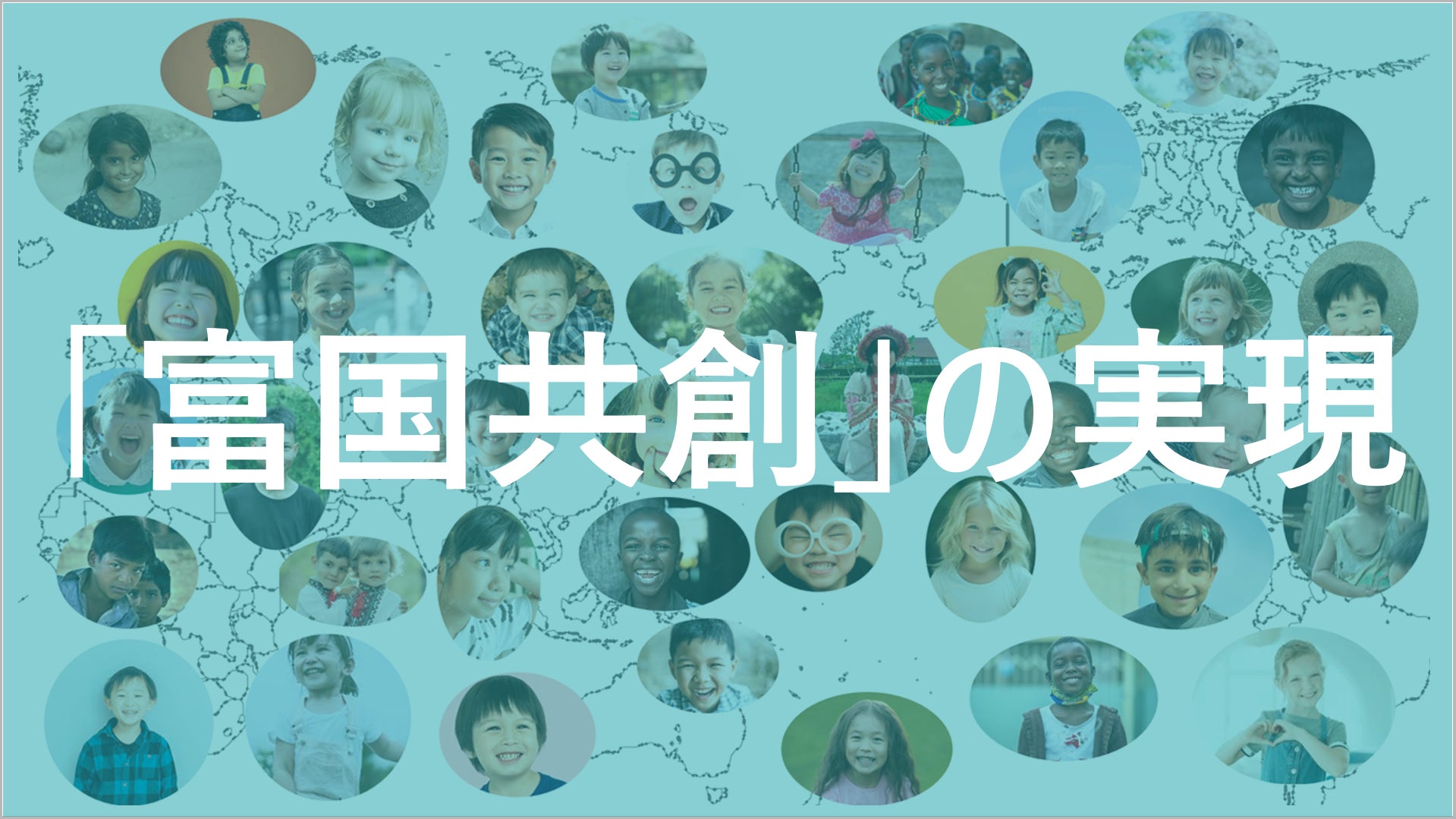 この〈富国共創〉とは、富を"競争に勝つ"ことで獲得するパラダイムから“共創により育む”パラダイムへのシフトです。多様な価値が可視化、評価され、交わり合うことで、新たな豊かさが生まれます。