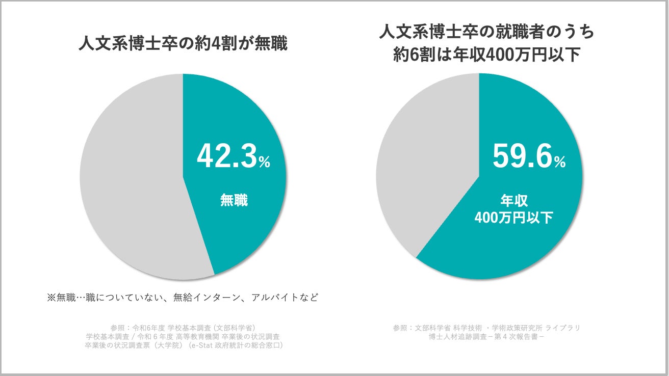私たちが挑戦を続けるなかでわかってきたことは、人文系の博士人材を活かす場が日本には少ないということです。博士まで修了した彼らは、日本の未来にとって極めて重要なポテンシャルを持っています。それにも関わらず、豊かな才能を持っている人材が職につけず、無給でインターンをしたりアルバイトでなんとか生活を凌いでいる現状があります。