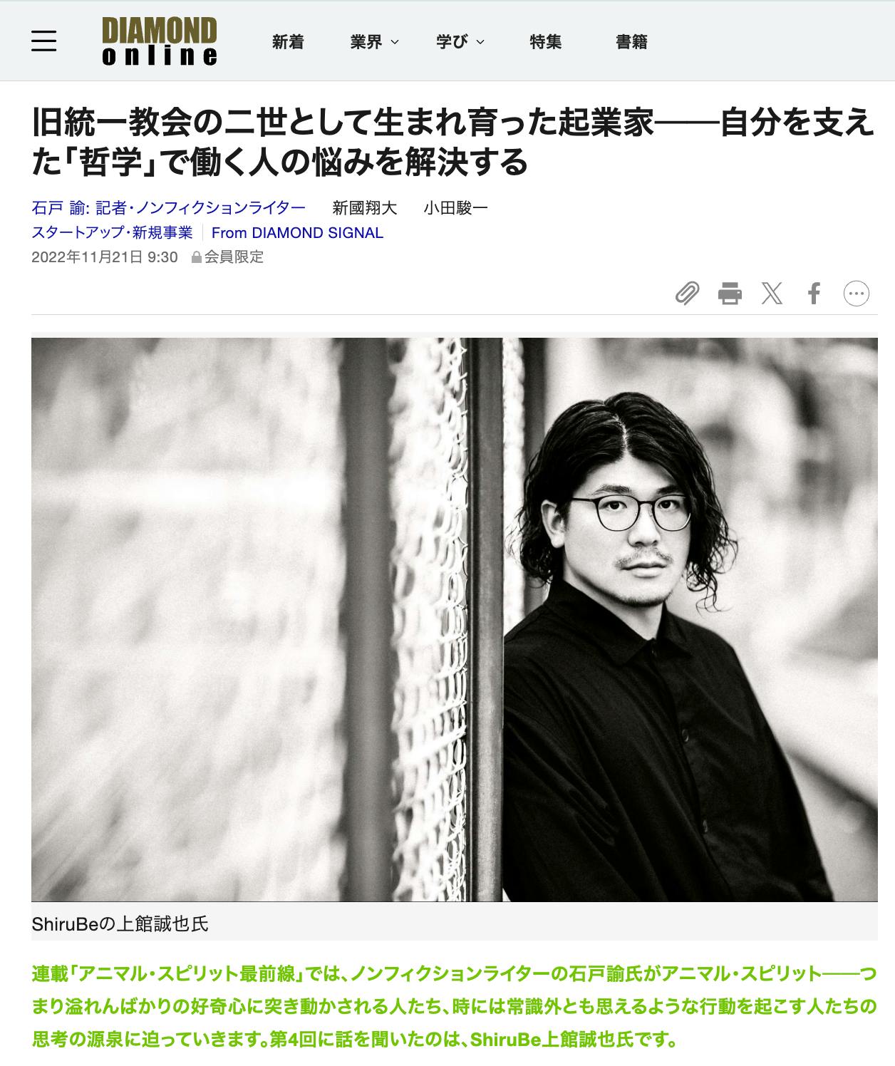 ※創業時にダイヤモンド・オンライン(旧:DIAMOND SIGNAL)さんに取り上げていただきました。詳しい背景が気になる方はぜひご覧下さい。