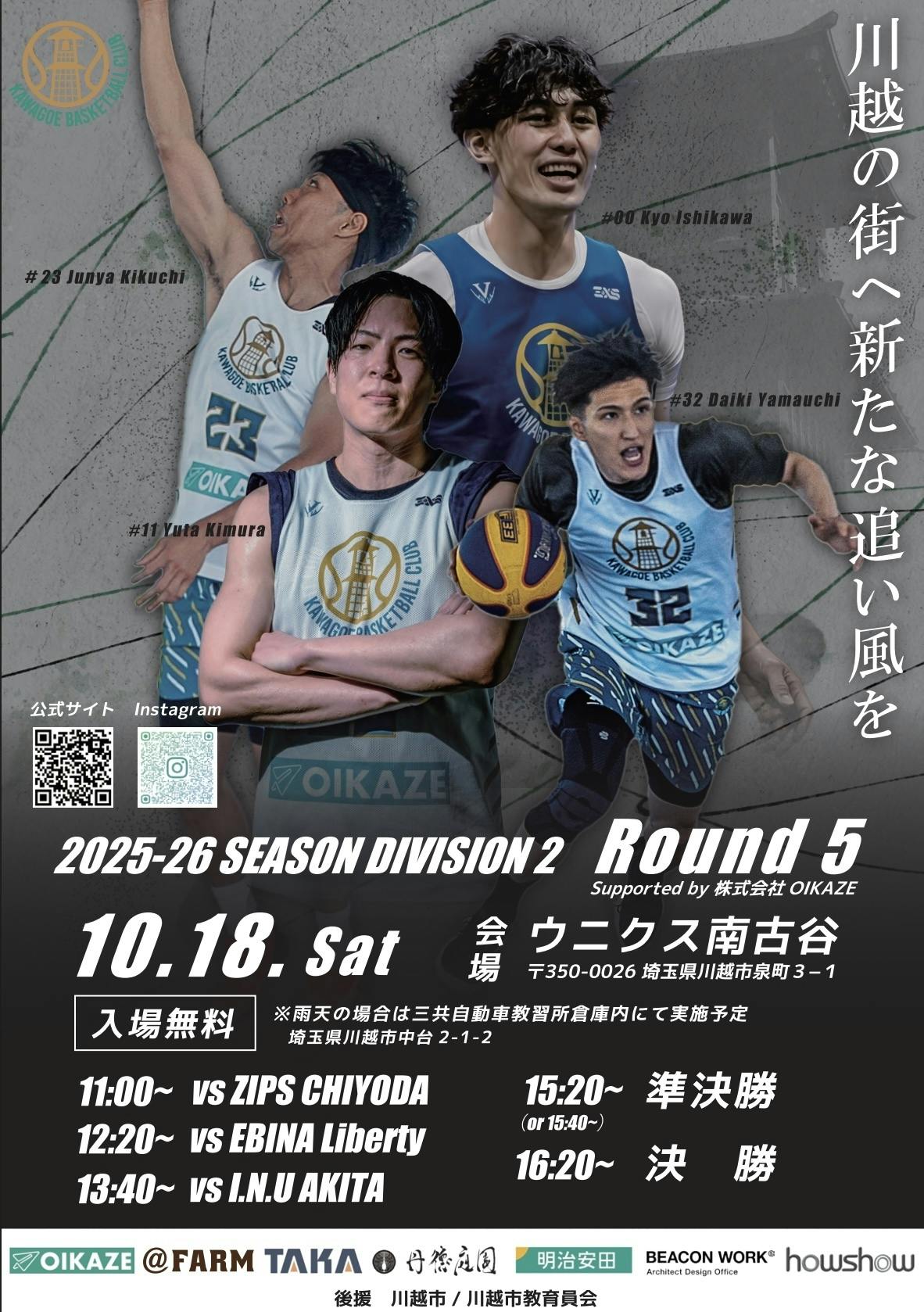現在、国内プロリーグ「3×3(トライクロス)リーグ」に参戦し、全国の舞台で戦いながら、地元・川越の皆さまと一緒に歩むチームを目指しています。