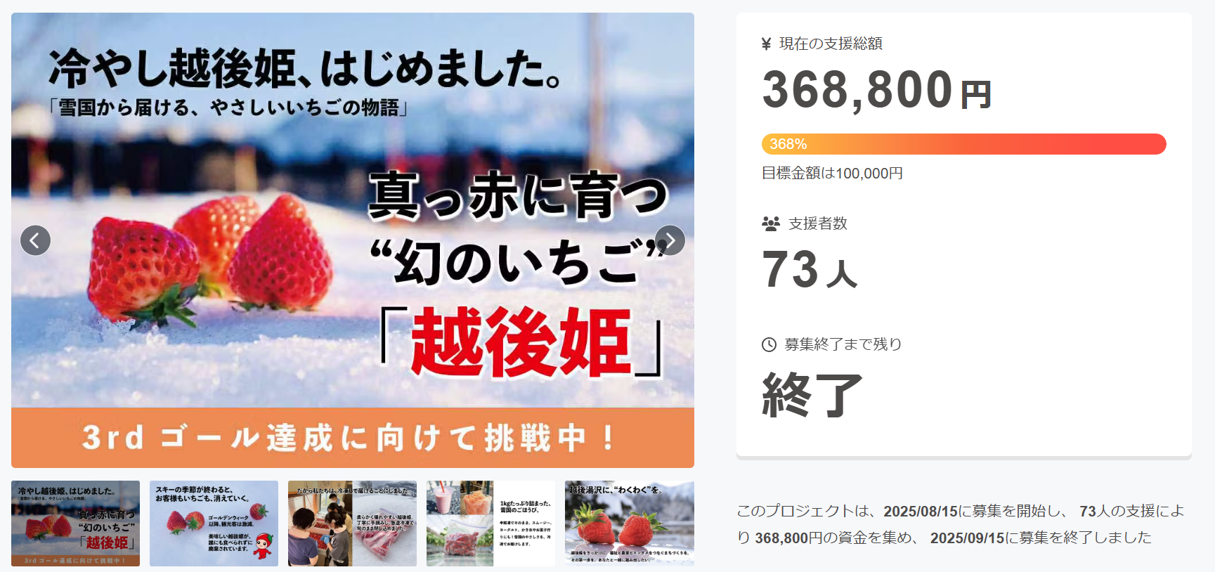 まずはいちご村を知ってもらえればと10万円目標で始めたクラファン。