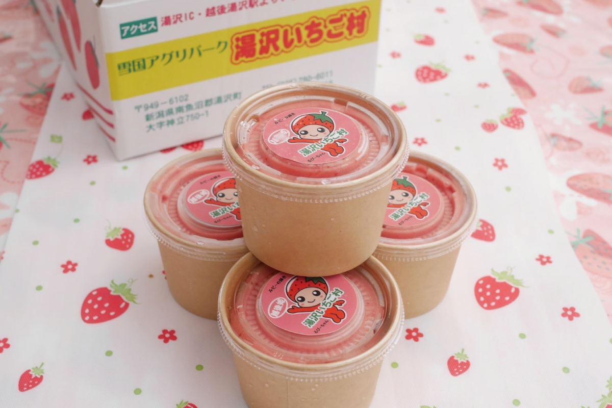 いちご村で育てた「越後姫」をふんだんに使った、手作りアイスをご用意しました。