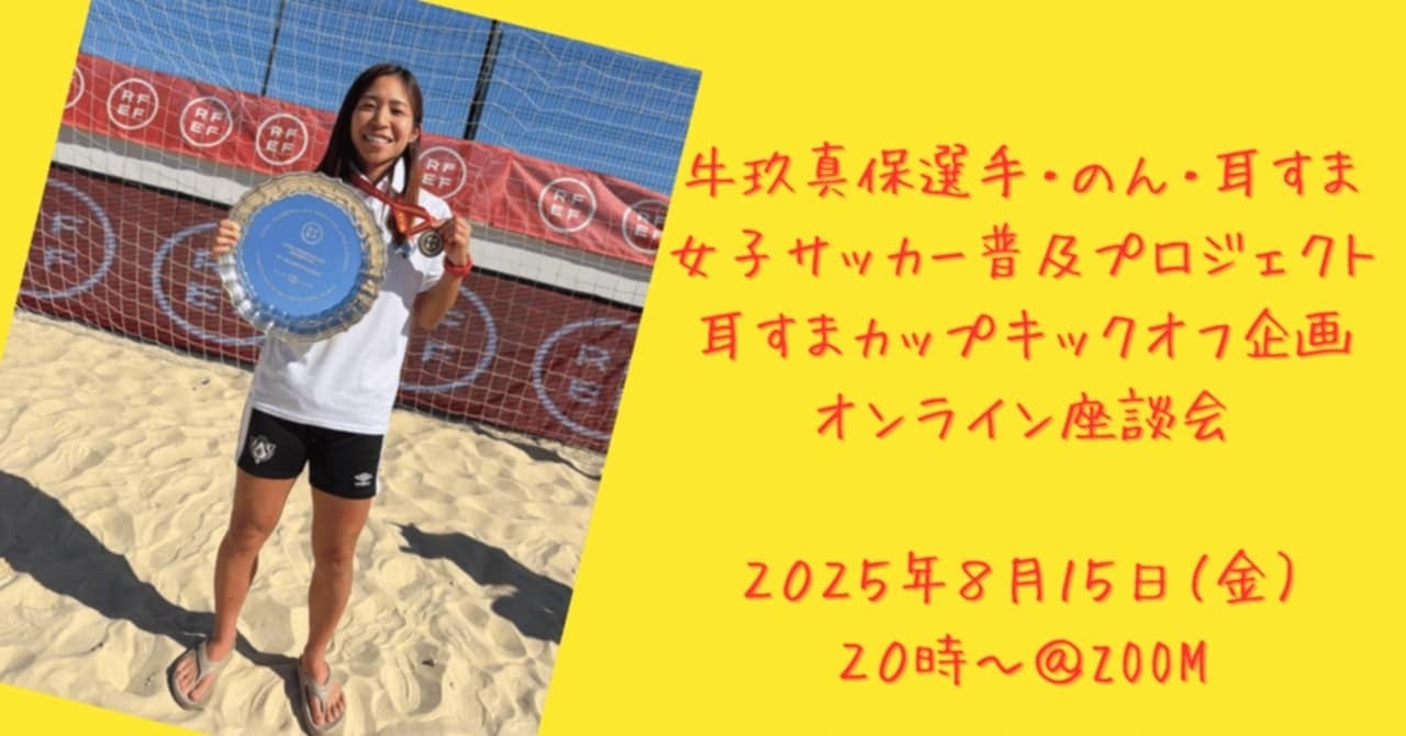 ●8月15日(金)20時~ 女子ビーチサッカー選手・牛玖真保選手、現役女子中学生のん・耳すま3者で座談会を開催 → 牛玖真保選手、スペシャルサポーターに就任!