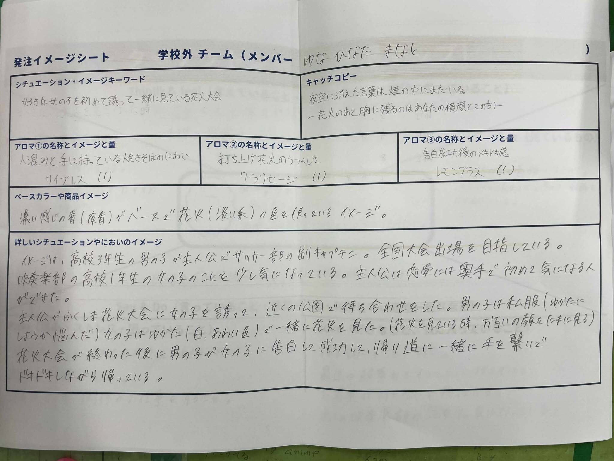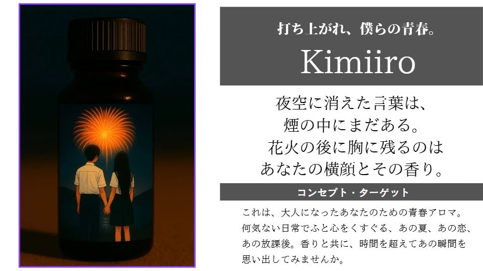 「青春の高揚感と花火の美しさ」を香りで表現しました。