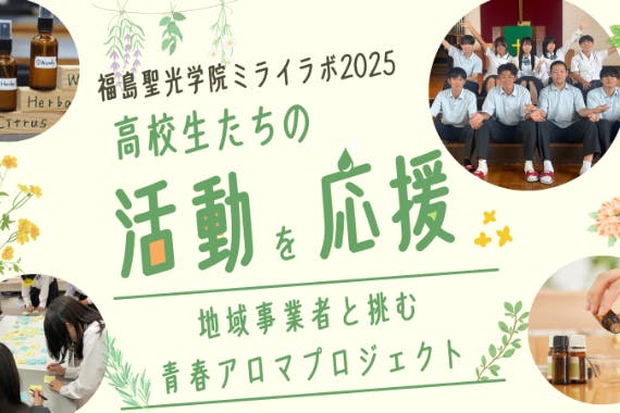 私たちのクラウドファンディングでは、「商品を買う」こと以上に、高校生の挑戦を応援してもらうことを大切にしています。そのため、リターンはアロマ商品だけでなく、今回ご協力いただいた地域事業者さん、学校などにもお力をお借りし、福島の魅力や授業の雰囲気を感じられるもの、授業報告会(高校生が直接活動を報告)などを用意しました。応援の気持ちに合わせて、ぜひ選んでいただけたら嬉しいです。