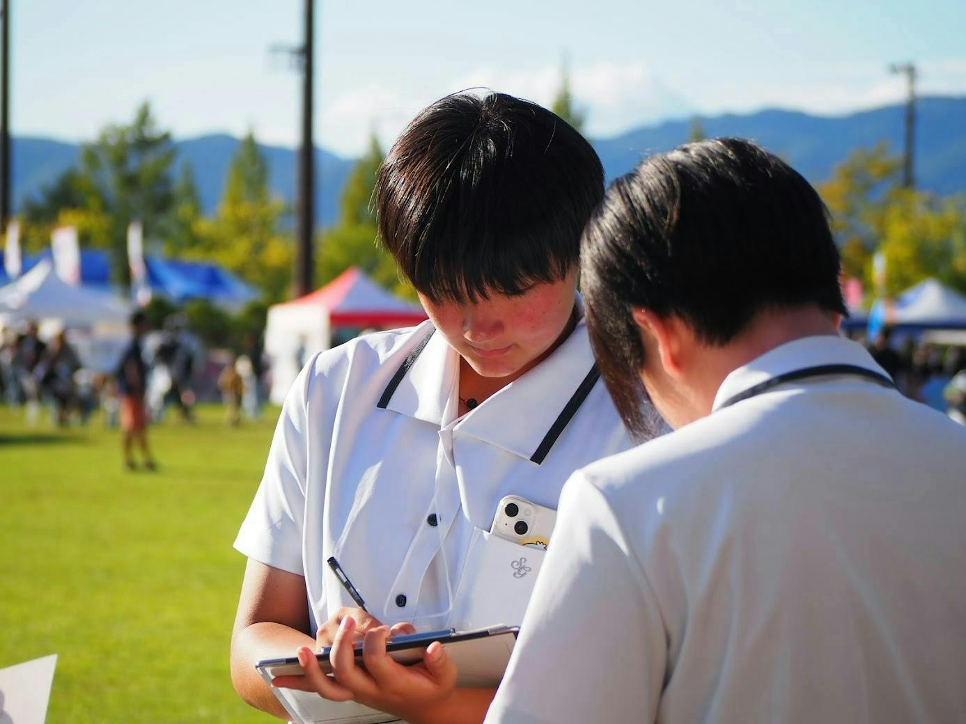 当日は快晴に恵まれ、多くの来場者で賑わいました。学生チャレンジブースに出展したミライラボのブースも大盛況! 最初は緊張していた生徒たちも、次第に笑顔で来場者に声をかけたり、取材に堂々と対応したりと、頼もしい姿を見せてくれました。