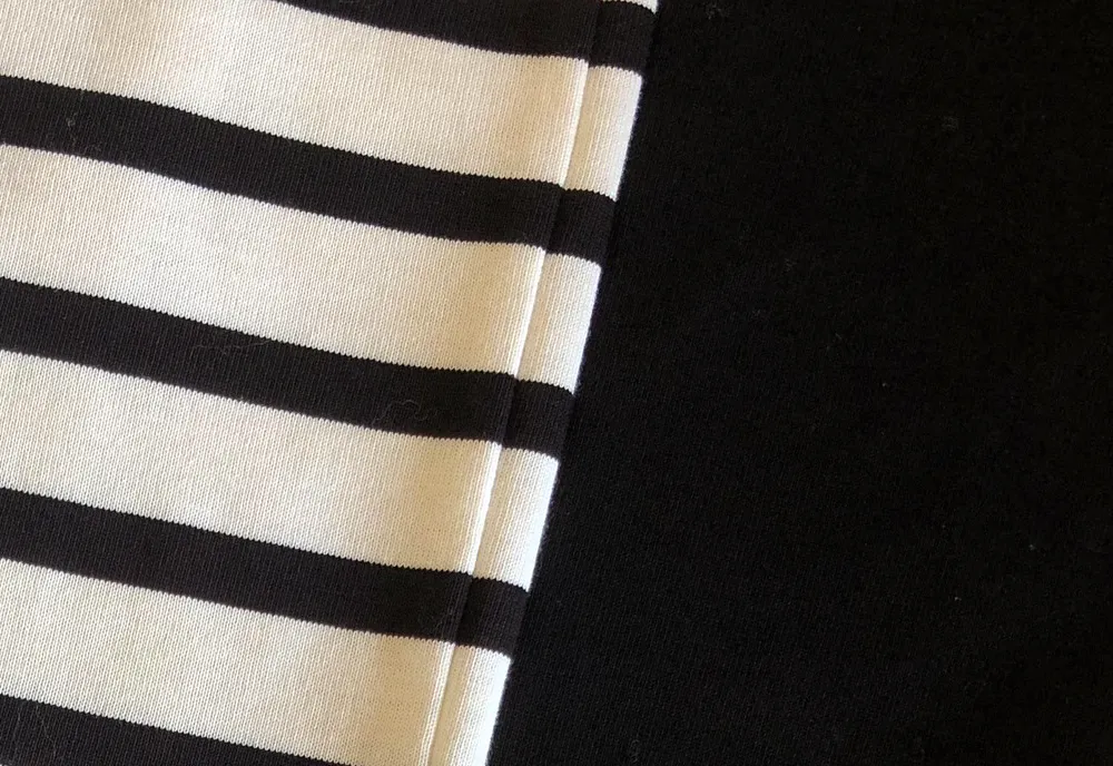 ナチュラルな生成りにブラックのラインが映える一枚。