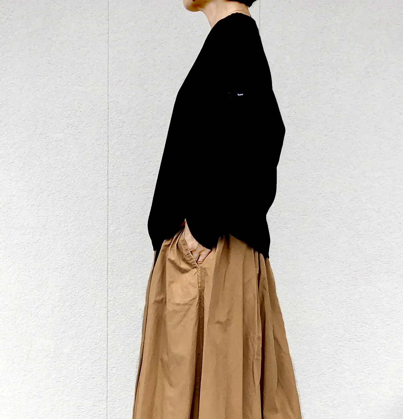 さらっとして厚すぎない生地だから、春から秋、そして冬の重ね着まで活躍。
