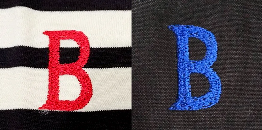 今回のクラウドファンディングでお届けするTシャツには、裾にあしらった「B」の刺繍を ブラック / シルバー / レッド / ブルー の4色からお選びいただける特典をご用意しました。