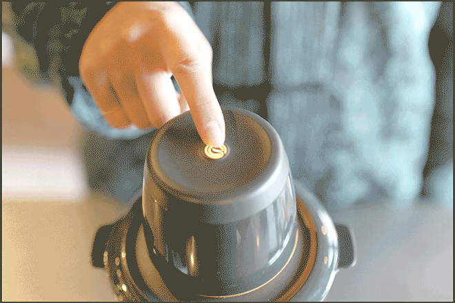 最後に真空ポンプを上部にセット。ボタンで3モード(抽出の濃さ)を選び、長押しすれば起動します。