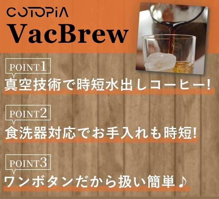 VacBrewによるコールドブリューは、従来の長時間待つスタイルとは異なり、最短5分で滑らかな味わいを実現します。
