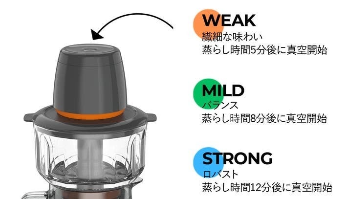 VacBrewは、ワンボタンで異なる抽出モードを切り替えることができます。