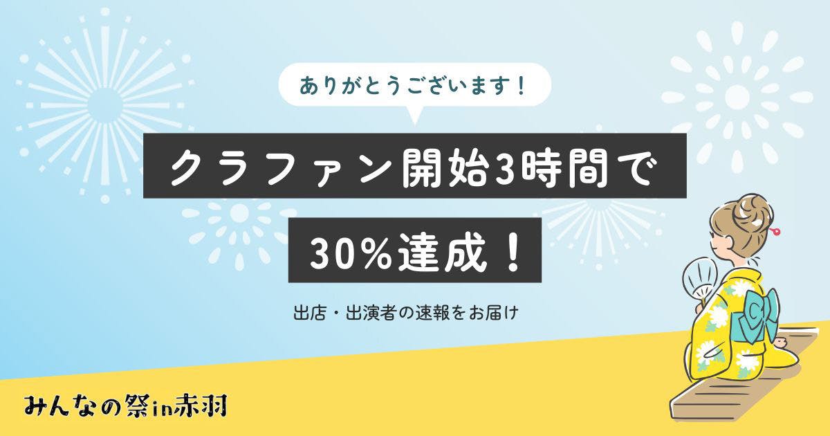 皆さまのおかげで開始わずか3時間で目標金額の30%を達成することができました!