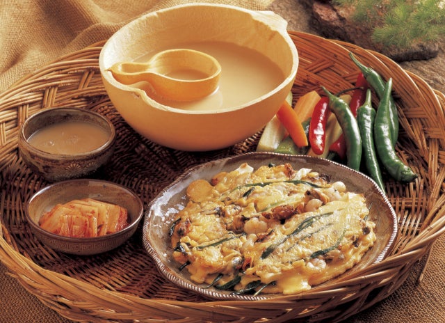香ばしく焼き上げたチヂミと、まろやかな喉ごしのマッコリをご用意。