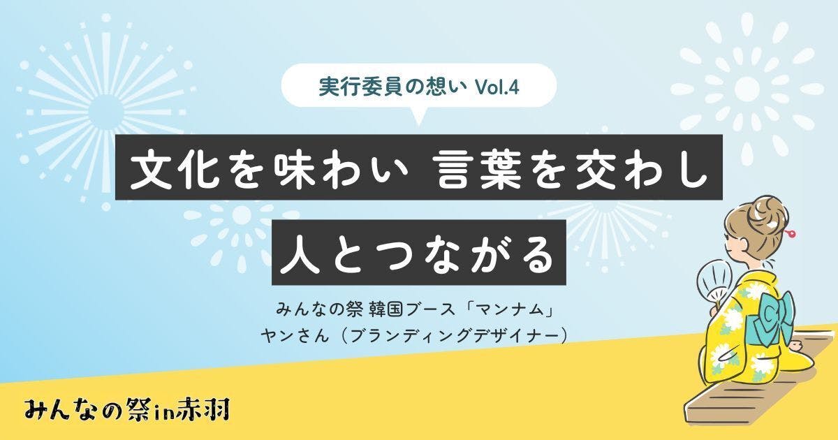 本日はみんなの祭 韓国ブース「マンナム」 ヤンさん(ブランディングデザイナー)からのメッセージをお届けします。