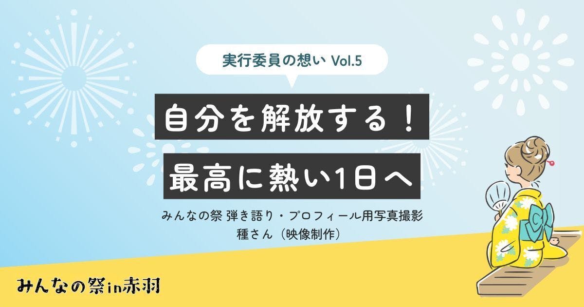 本日はみんなの祭 弾き語り・プロフィール用写真撮影 種さん(映像制作)からのメッセージをお届けします。