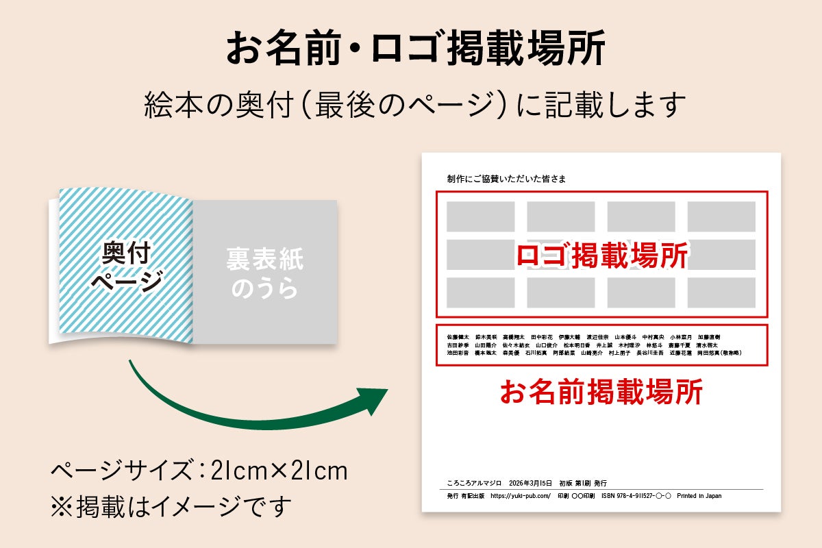 ・ご支援いただいた方のお名前を、絵本の奥付(最後のページ)に記載します。