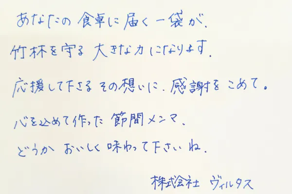 あなたがこのメンマを食べることで、竹林の未来を一緒に守ることができます。