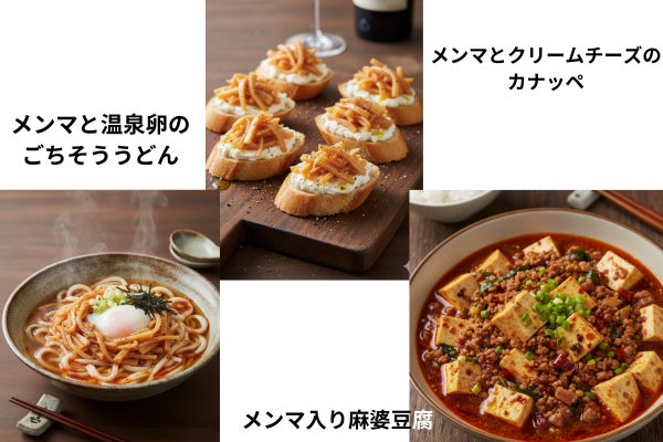 たくさんのご支援をありがとうございます。応援のお声も頂き、本当にうれしく思っています。こちらの国産節間メンマを使って、様々なアレンジをお楽しみいただけます。実は、和洋中、全部行けるんです!代表的なレシピを3つ紹介しますね。ピリ辛メンマとクリームチーズのカナッペ意外な組み合わせがクセになる、おつまみカナッペ。クリームチーズのまろやかさに、メンマのコクと辛みが重なり、ワインにも日本酒にも合う大人の味。材料(10個分):クラッカーまたはバゲット10枚/クリームチーズ80g/国産節間メンマ(細切り)40g/黒こしょう・オリーブオイル少々作り方:クラッカーにチーズを塗り、刻んだメンマをのせ黒こしょう。オリーブオイルを一滴垂らす。ピリ辛メンマ入り麻婆豆腐定番の麻婆豆腐に、刻んだピリ辛メンマをプラス。歯ごたえと香りが加わり、いつもの麻婆が一段深い味わいに。ご飯が止まらなくなるやみつきアレンジ。材料(2〜3人分):豆腐1丁/豚ひき肉150g/国産節間メンマ60g/麻婆の素(または豆板醤・甜麺醤・にんにく・しょうが)少々作り方:ひき肉を炒め香りが立ったらメンマ(みじんぎり)を加える。豆腐と調味料を入れ、水分を飛ばしてとろみをつける。 ピリ辛メンマと温泉卵のごちそううどんとろける温泉卵と、ピリ辛メンマの旨みが出汁に溶け込む一杯。冷でも温でも楽しめる、シンプルなのに贅沢な和風うどん。材料(1人分):ゆでうどん1玉/めんつゆ適量/温泉卵1個/国産節間メンマ40g/刻み海苔・ねぎ少々作り方:うどんにめんつゆを注ぎ、温泉卵とメンマをのせ、刻み海苔とねぎを添える。好みでラー油を少々。簡単ですよね!分量はあくまで目安なので、きっちり計量しなくてもOK!お好みの量(メンマは特に)で作ってみて下さい。※画像はイメージです。