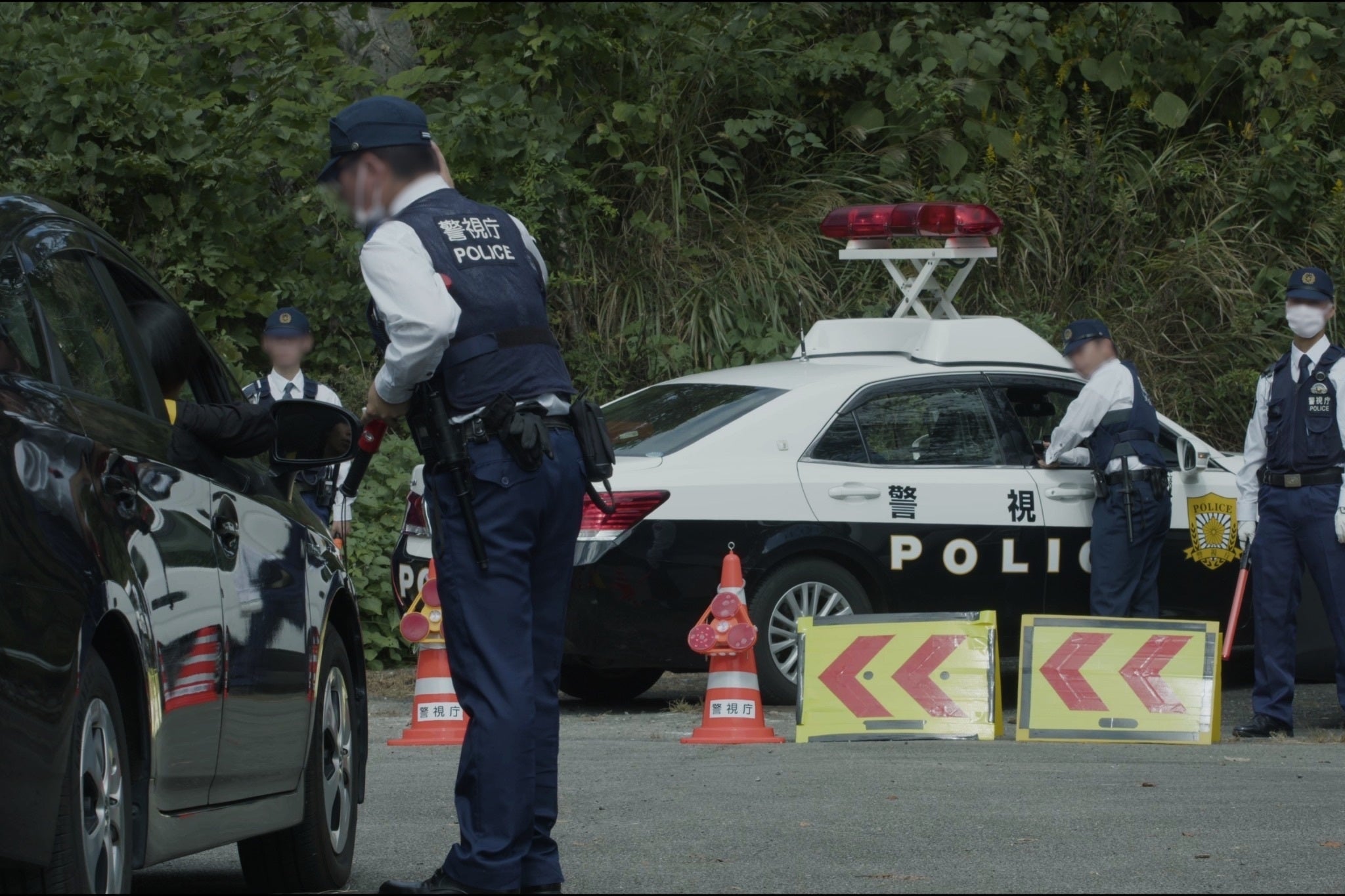 作品の本格的なクランクインはまだ先ですが、先んじて警察による封鎖・交通規制シーンを撮影しました。